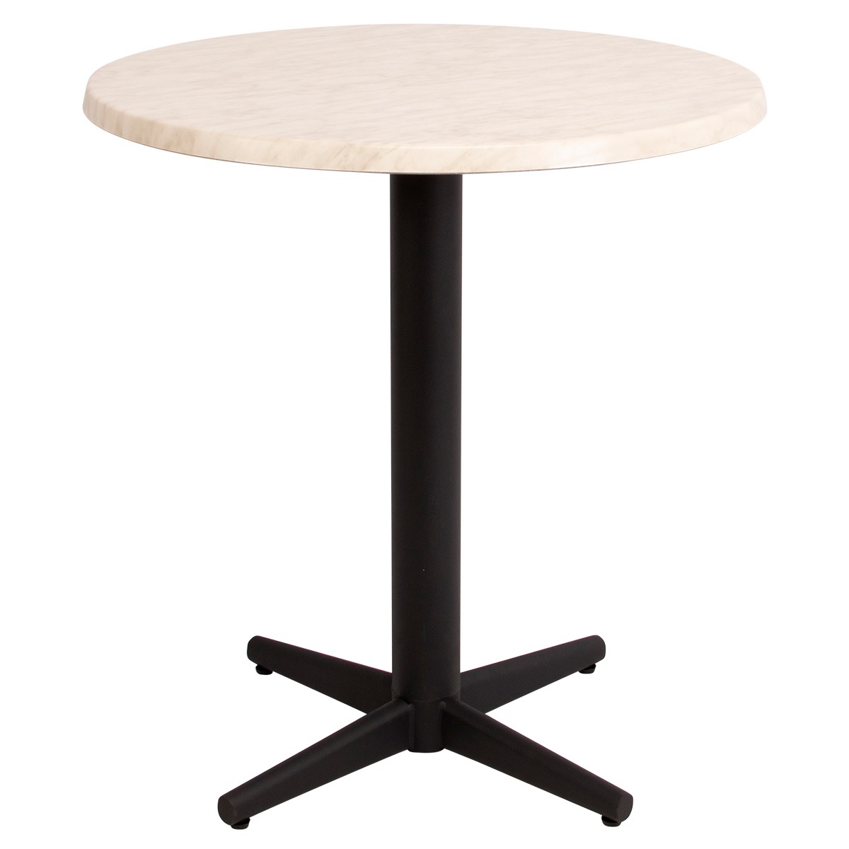 Discover the elegant round Bistro laminate table with a white marble-like expression, replicating the bright and refined appearance of genuine marble. This maintenance-free table adds elegance to any café, restaurant, or balcony setting. With its durable construction, it is perfectly suited for both indoor and outdoor use, making it the ideal choice for any occasion. The tabletop can be used for both our café and bar frames.