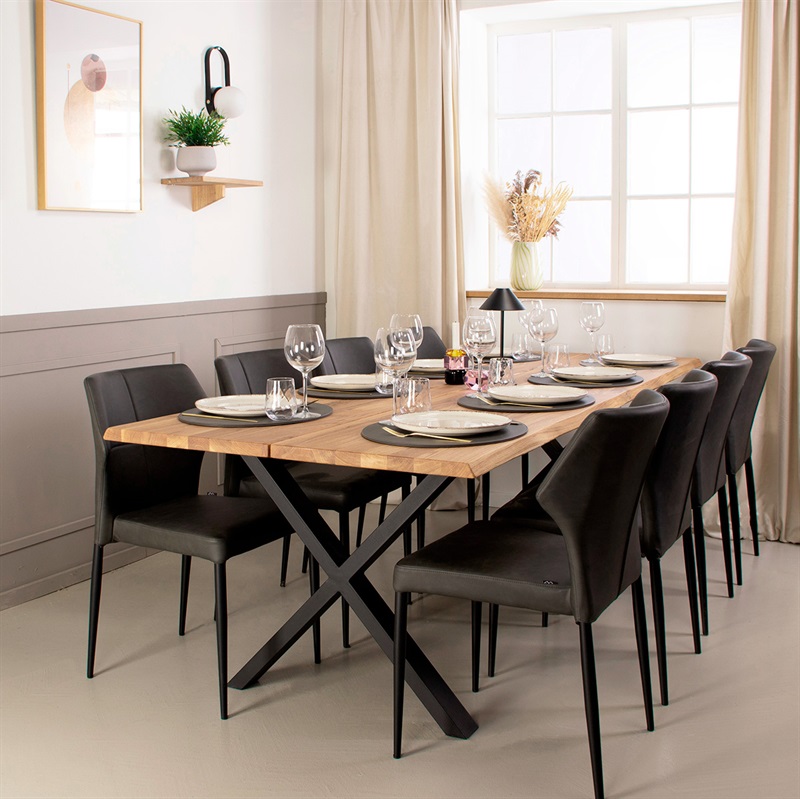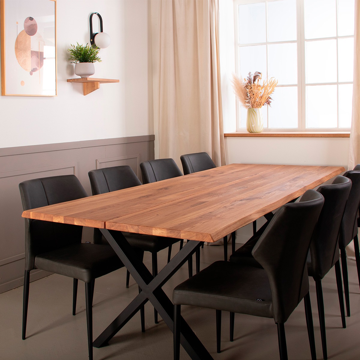 Curve plank table top from House of Sander is crafted from solid FSC-certified oak. The solid tabletop is perfectly suited for use as a dining table. The plank table is divided into two parts and features naturally wavy edges. All our frames can be assembled with any plank table.