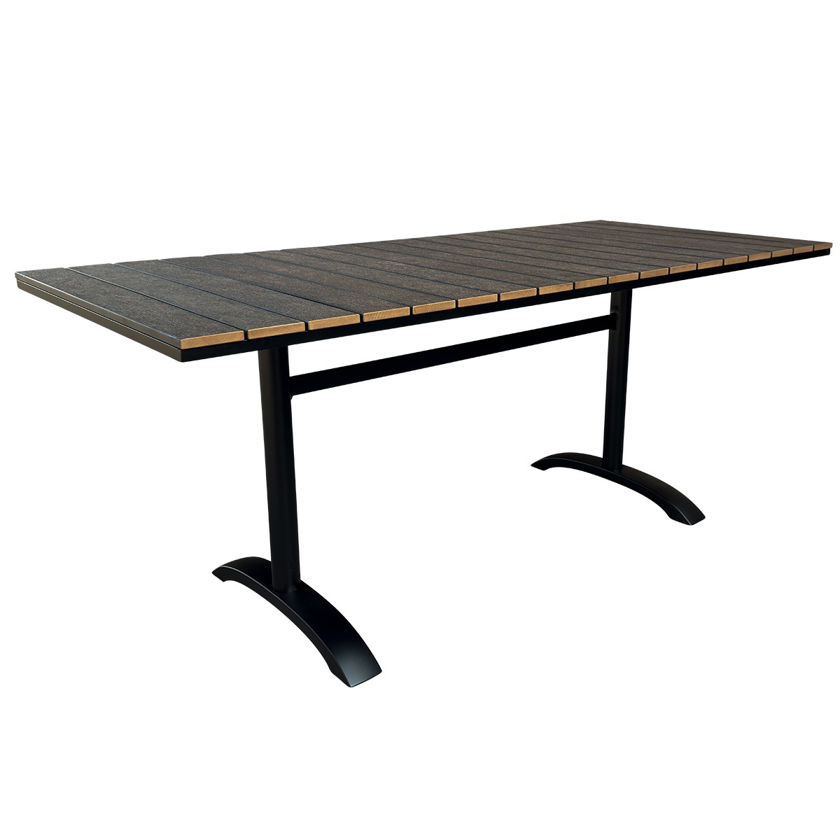 The tabletop is made of durable nonwood with a natural wood structure that gives it a warm and natural appearance. The material is robust and easy to maintain, which makes the table suitable for outdoor use. The wide slats of approx. 90 mm give the tabletop a balanced look.
