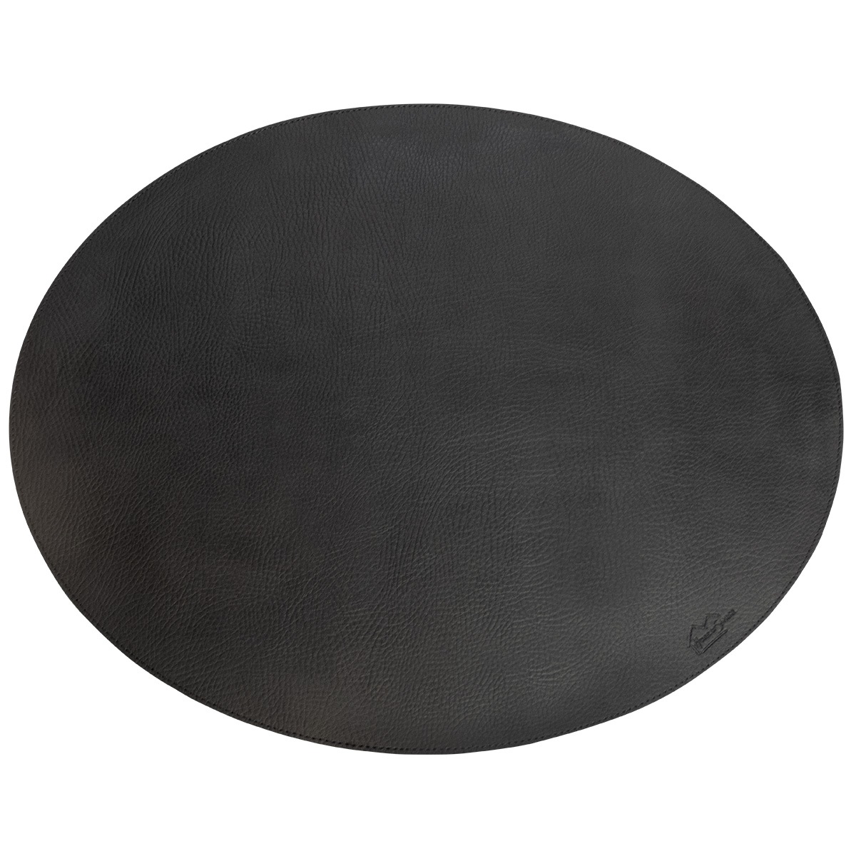 The oval placemat in black is made of bonded leather. This beautiful placemat is perfect for extending the lifespan of the dining table in a simple and elegant manner.
