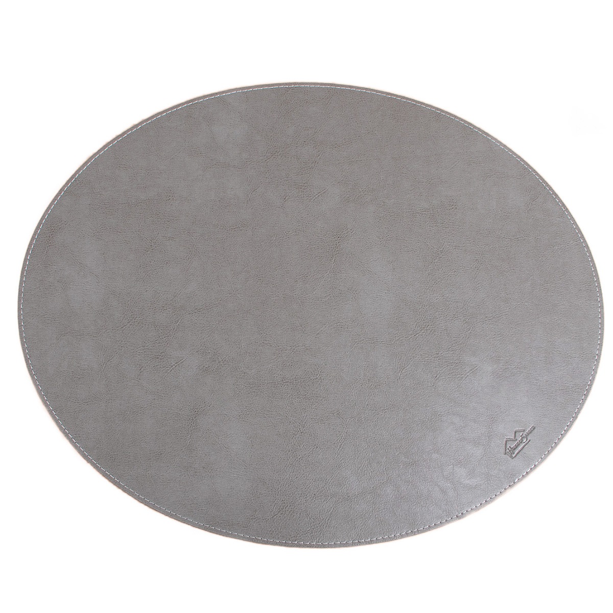 The oval placemat in grey is made of bonded leather. This beautiful placemat is perfect for extending the lifespan of the dining table in a simple and elegant manner.